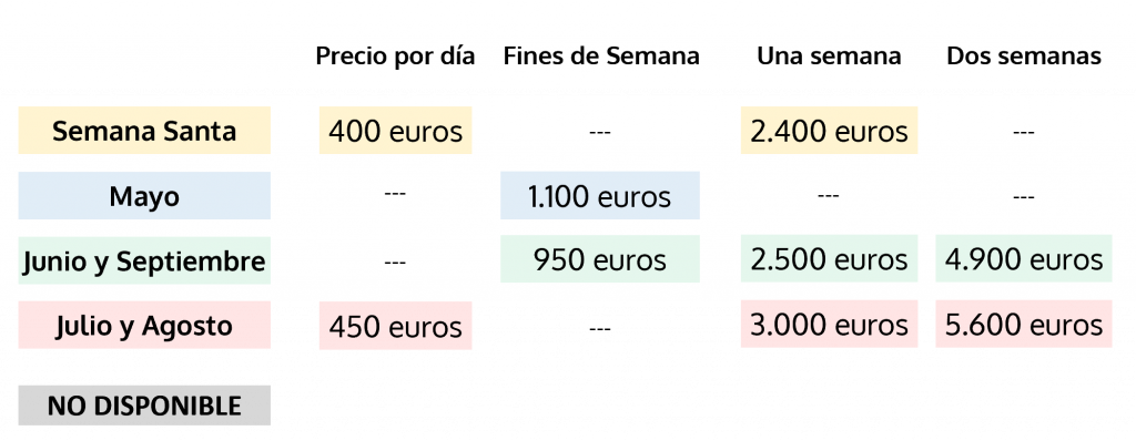 En los meses de junio y septiembre se podrá alquilar por fines de semana, entrando al alojamiento los viernes entre las 17:00 y las 21:00 y la salida será el domingo antes de las 14:00.